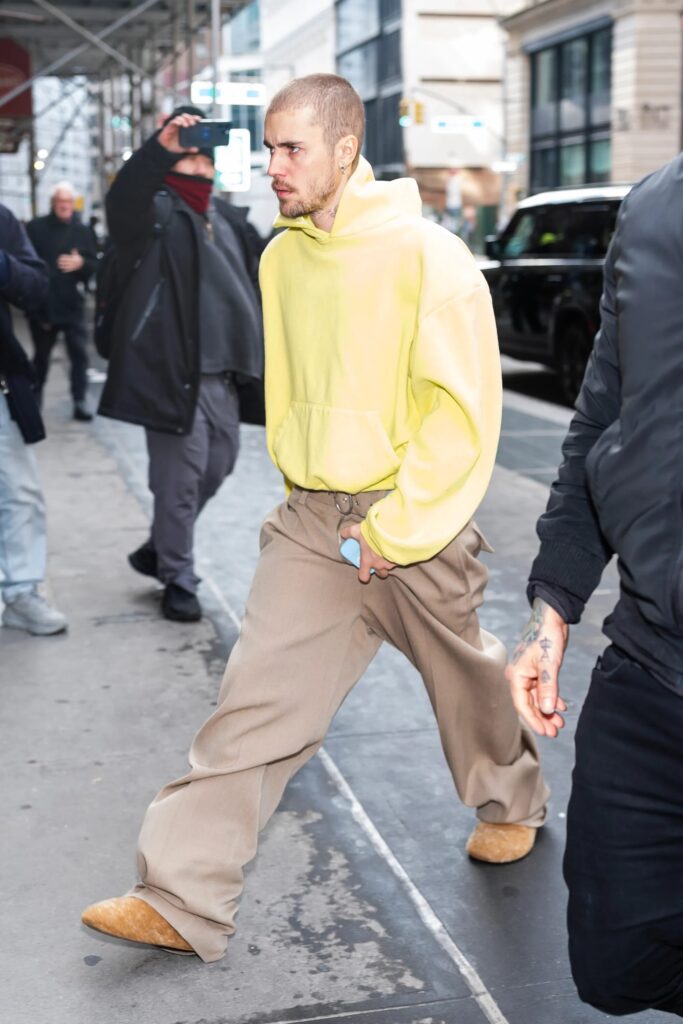 ジャスティン・ビーバー。ネオングリーンのアウターで注目を集める
