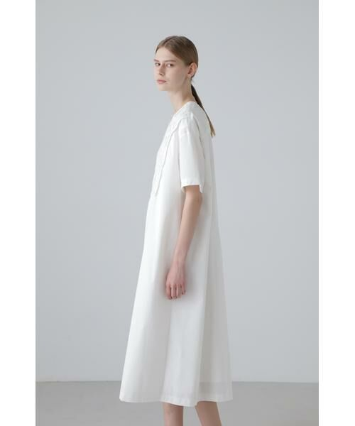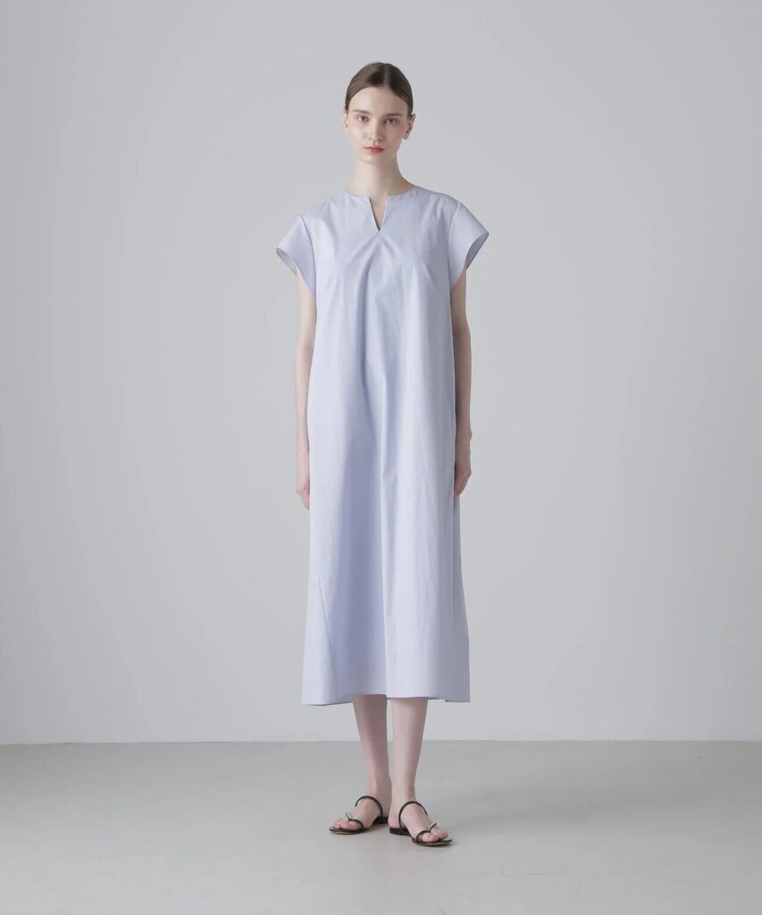 ドラマ「推しの王子様」では、白のバンドカラーブラウスにグレーVネックワンピースを合わせたスタイルや、袖がゆったりしていてスカートにティアードが入ったVネックワンピースなど、アドーアのアイテムを数多く着用されています。