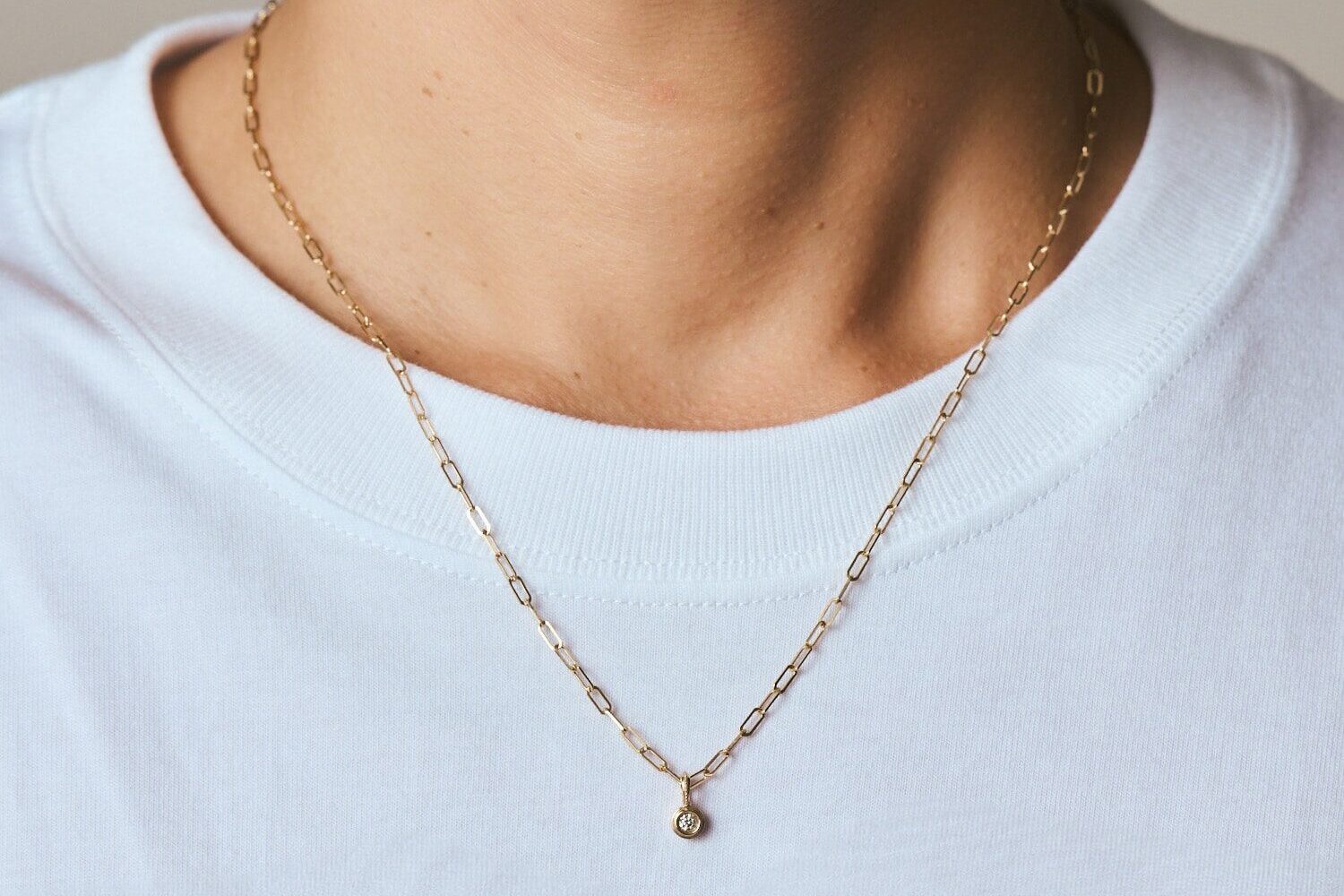 華奢なデザインだからこそ、複数のネックレスを組み合わせても重たくならず、洗練された印象に。シンプルな一粒ダイヤのネックレスに、イニシャルネックレスを重ねたり、異なる長さのチェーンを組み合わせたり。自分だけのスタイリングを楽しめます。
