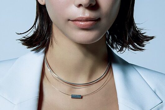 例えば、40cmの一粒ダイヤネックレスと、45cmのイニシャルネックレスを重ねるスタイル。長さに差をつけることで、それぞれのデザインが引き立ちます。