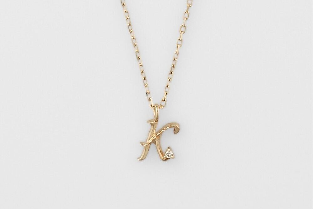 緩やかなラインで描かれた繊細な筆記体デザインに、ミル打ちを施したクラシカルな仕上がり。「A・H・K・M・R・S・Y」の7種類が展開されており、自分のイニシャルとしても、大切な人やペットのイニシャルを身につけるのもおすすめです。