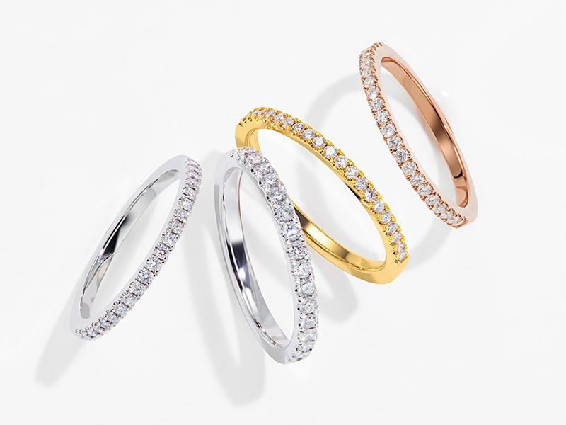 華奢なデザインだからこそ、他のリングとの重ね付けが楽しめるという声も。婚約指輪と結婚指輪を重ねたり、記念日にリングを追加したり。