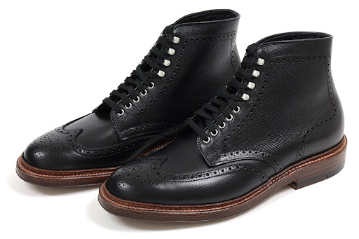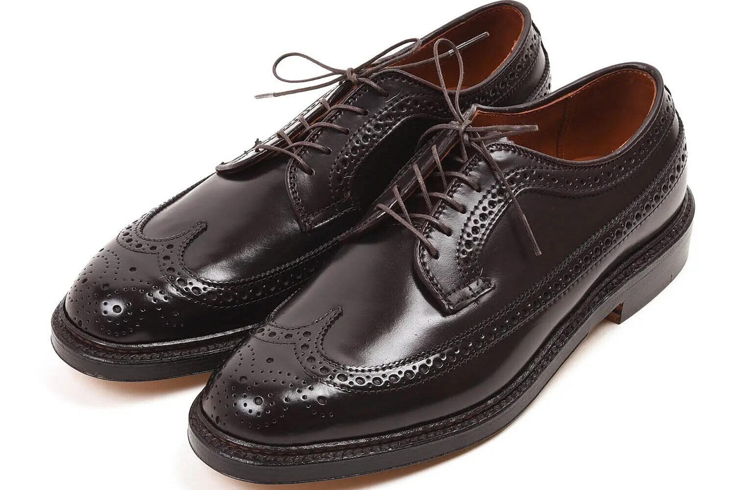 彫刻を思わせる美しい装飾が魅力で、ボリューミーなフォルムとウィングチップの絶妙なバランスが堪りません。イギリス靴のショートウィングと差別化するために、アメリカ靴ではロングウィングとなります。トゥのウイングがサイドからヒールにかけて伸びているのが、アメリカ靴らしさの象徴です。