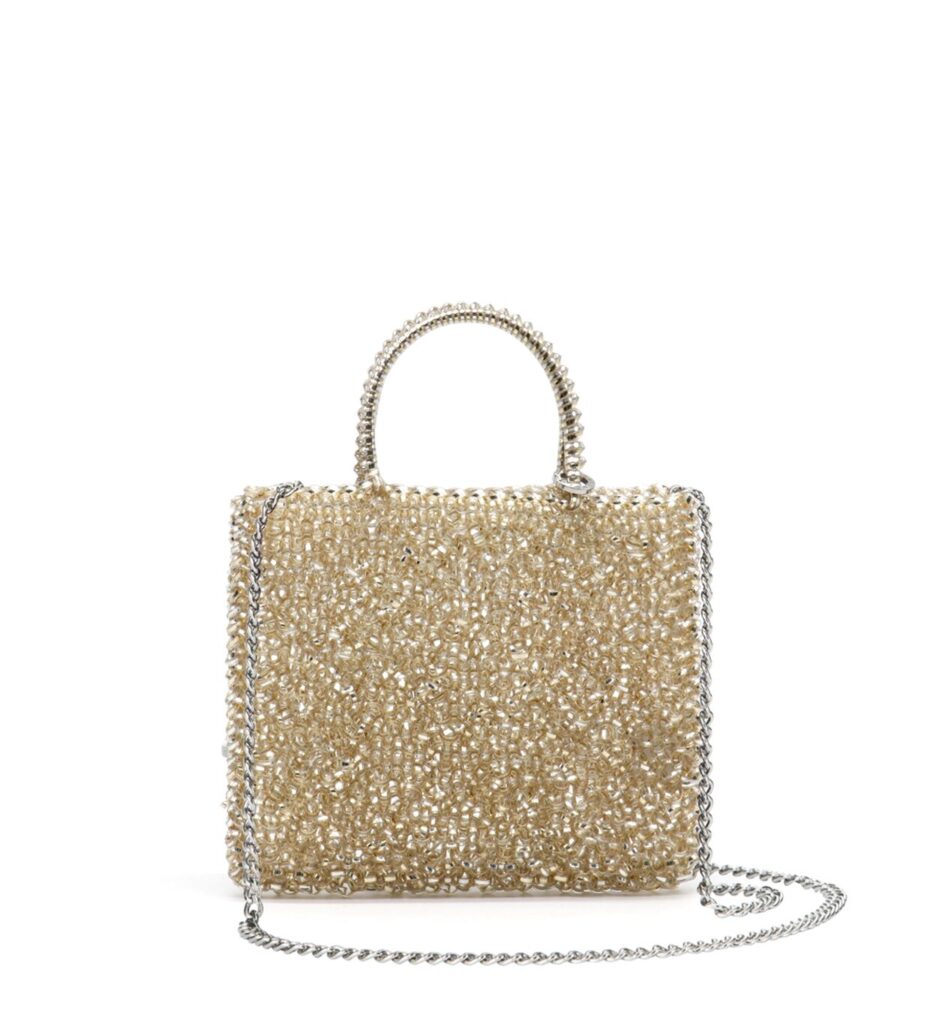 アンテプリマバッグの魅力は、職人が一つ一つ手編みで仕立てたワイヤーバッグの美しさ。光の角度により乱反射する星屑のような輝きが、シンプルコーデを格上げしてくれます。1998年の誕生以来、時代を超えて愛され続けているのは、その独創的なデザインと丁寧なものづくりがあるからです。