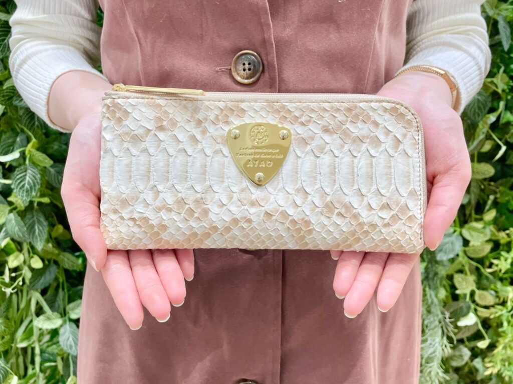 パイソン革は金運上昇効果も期待できるため、風水的にも非常に魅力的な財布といえます。「パイソンレザーの火付け役」「元祖L字長財布」として、アタオの代表的なシリーズのひとつ。使うほどに経年変化を楽しめ、高級感のある素材として、上品さ・デザイン性の両方を兼ね備えています。