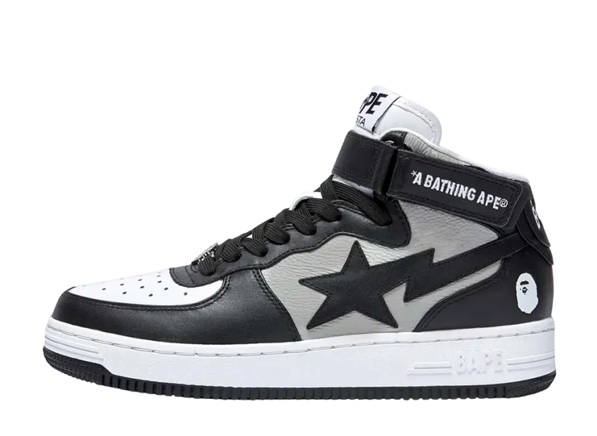 サイドには星型のロゴ「STA(スタ)」が大きく配置され、これがベイプスタのアイコンになっています。エアフォース1のスウッシュを星に置き換えたデザインは、見る人が見れば一目でベイプスタと分かる存在感があります。