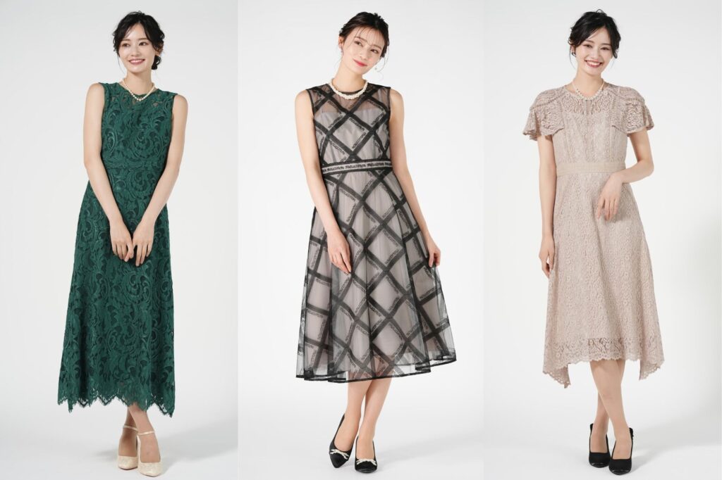 ワンピース、スカート、バッグなど、どのアイテムも華やかで、パーティーやお呼ばれにぴったり。普段使いもできるシンプルなデザインもありますが、基本的には「エレガント&華やか」が基調です。