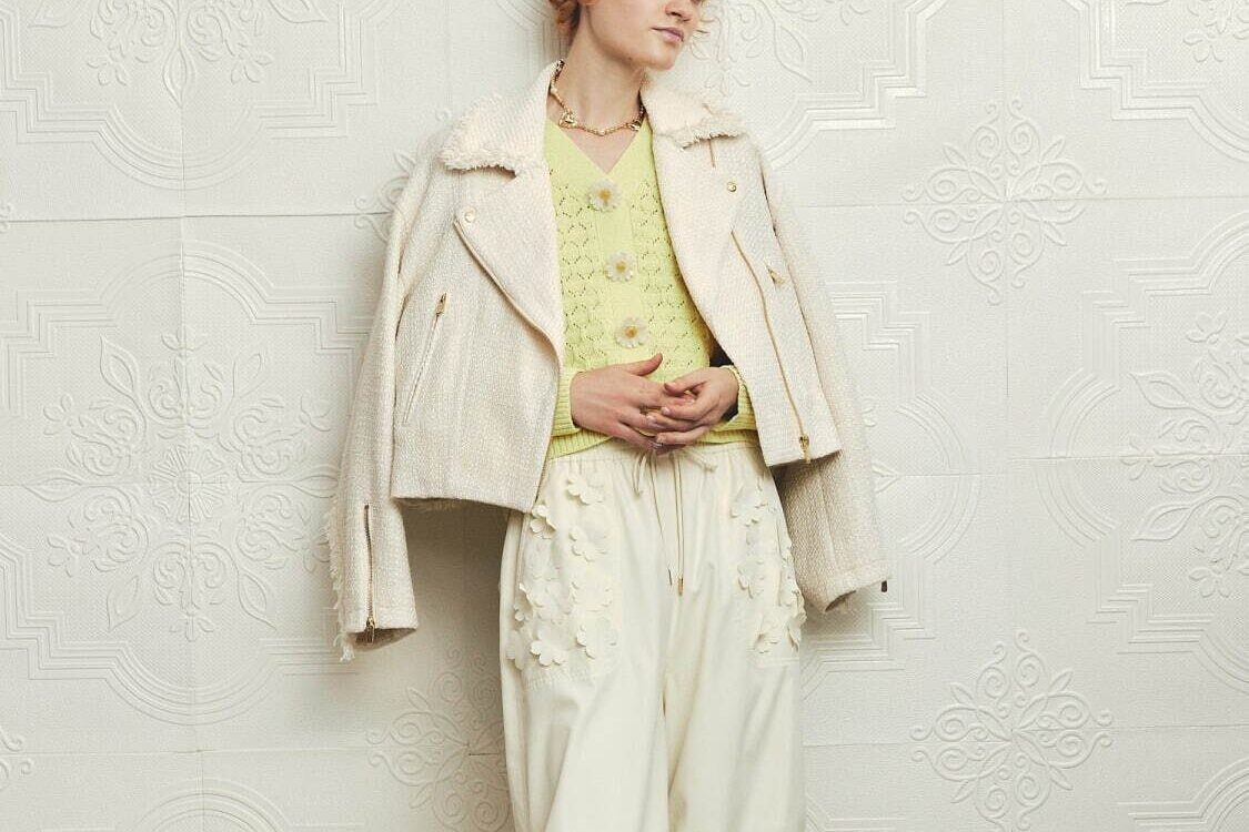毎シーズン植物や動物が登場するミュベールのクリエーションは、デザイナーが身近にある自然や普段の生活の中で感じたものをデザインすることで、どことなく温かみのあるコレクションに仕上がります。猫モチーフのアイテムも人気で、子猫のふわふわな毛並みやつぶらな瞳が再現されたバッグやニットカーディガンなどが注目を集めています。