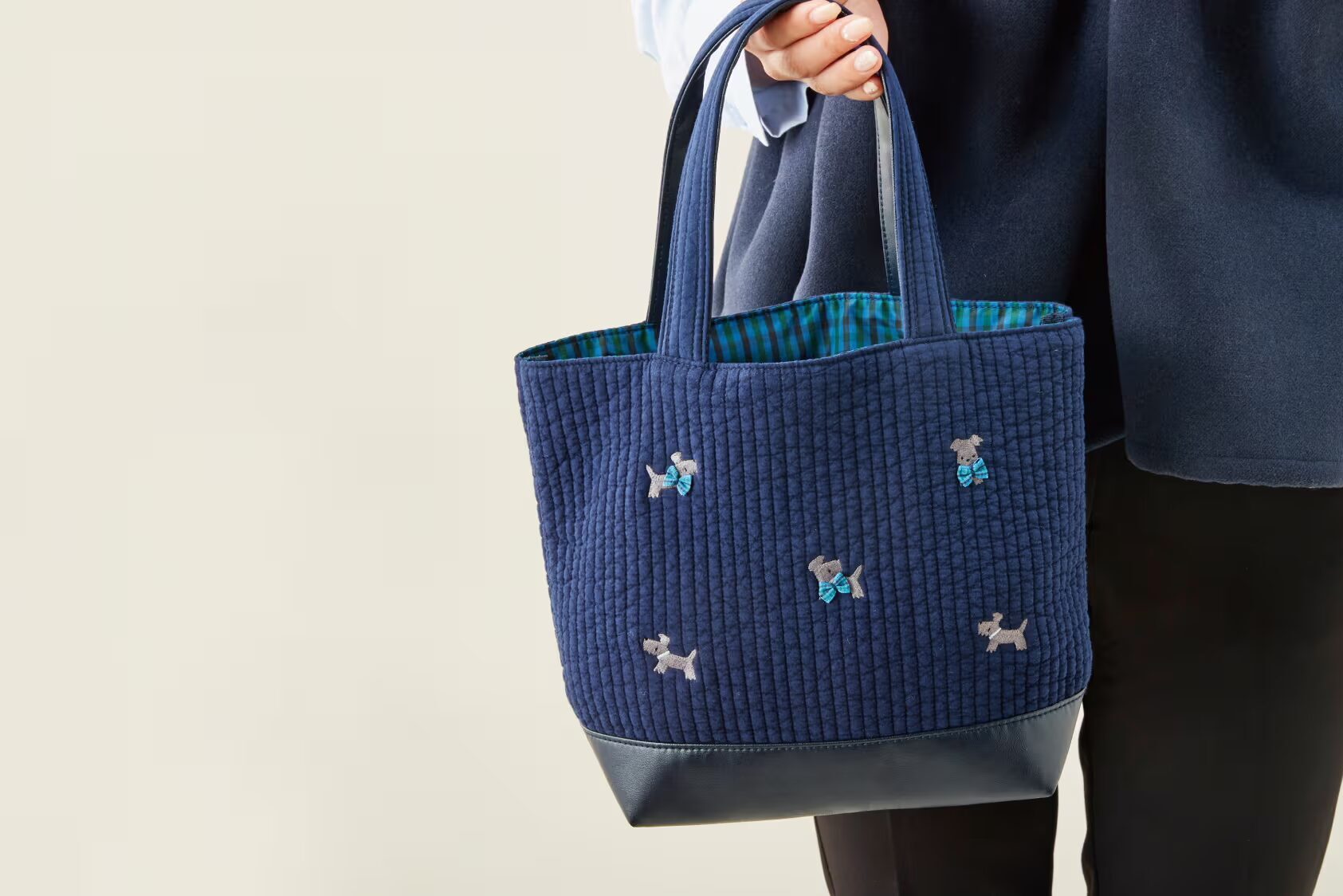 ・縦縞のキルティング:規則正しい縦のステッチが美しい