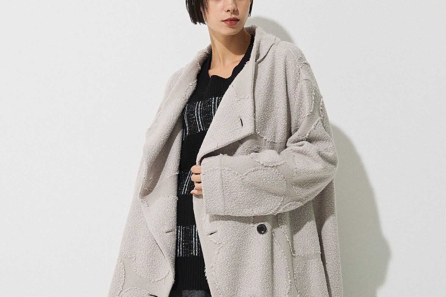 シンプルだけど、ちょっと大人で個性的なデザインが、流行を追うのではなく、自分らしいおしゃれを楽しみたい大人女性にぴったり。着るだけで存在感があり、しかも上品に決まるので、コーデに自信が持てる一着になります。