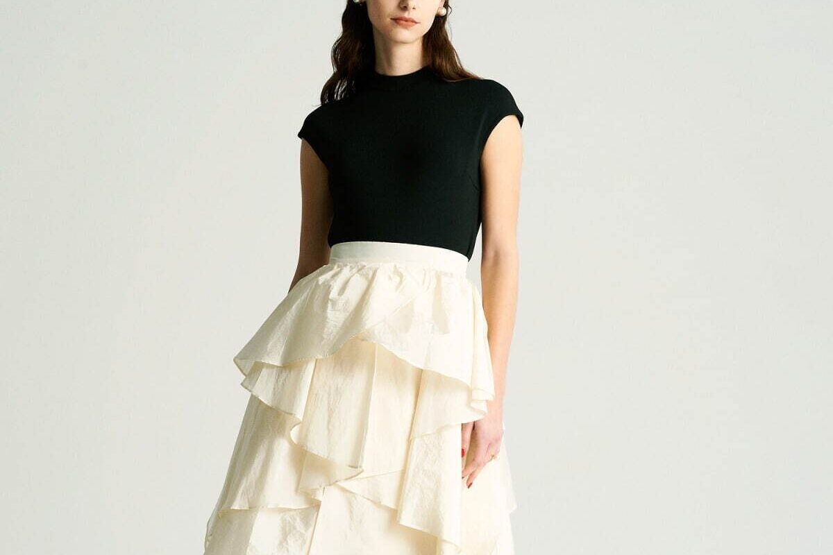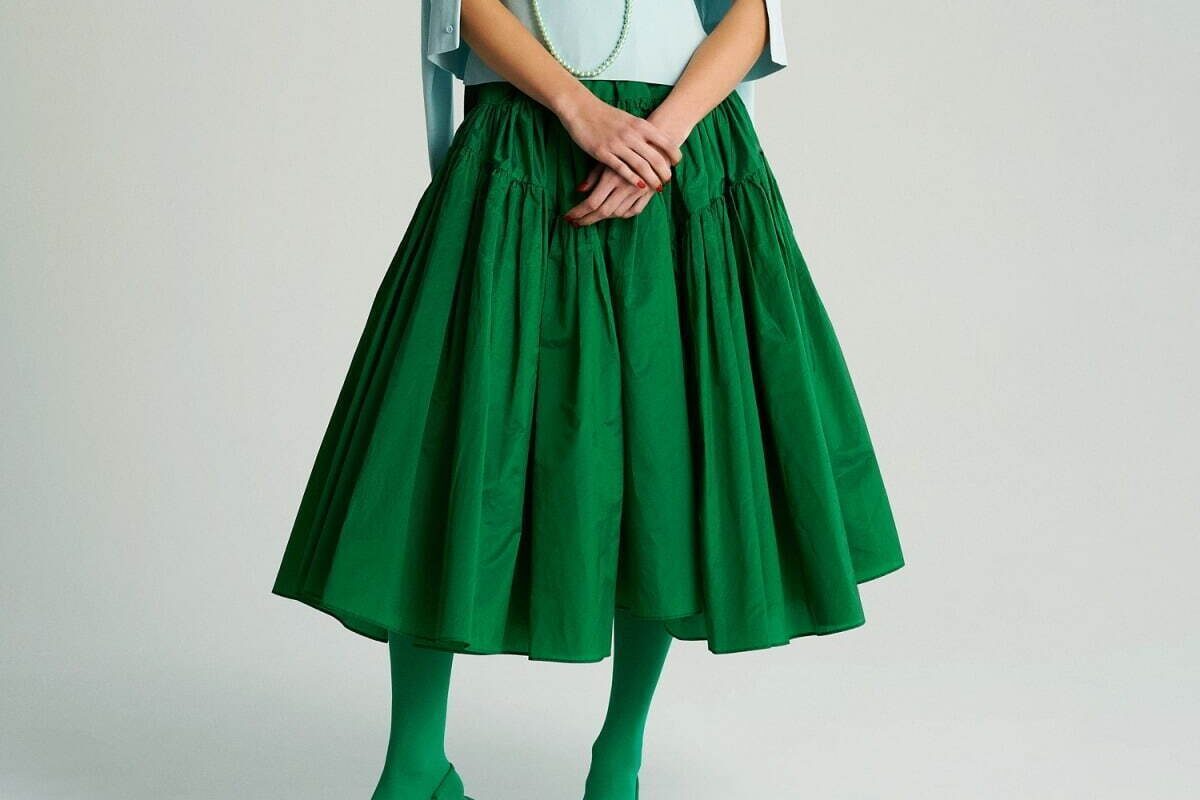 美しいレースや大胆なフリンジ、ハリのある高級な生地を用いたドレスのようなアイテムなどデザインはさまざま。毎シーズン量感やシルエット、ディティールを工夫してスカートの多彩な表情を引き出すブランドです。