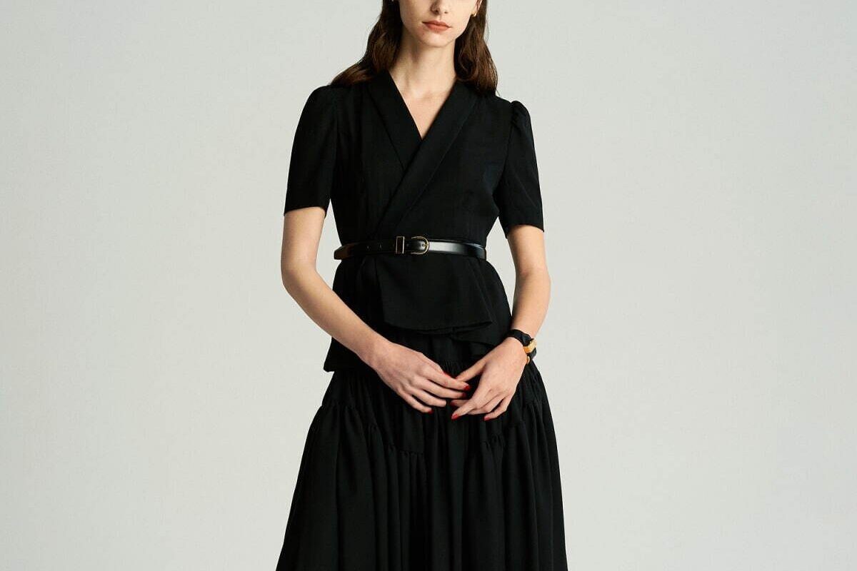 ファーストシーズンから作り続けている、ブランド定番のタック&フレアスカートは、穿くとスタイルよく見えると評判の一着で、ブランドのアイコン的なモデルです。