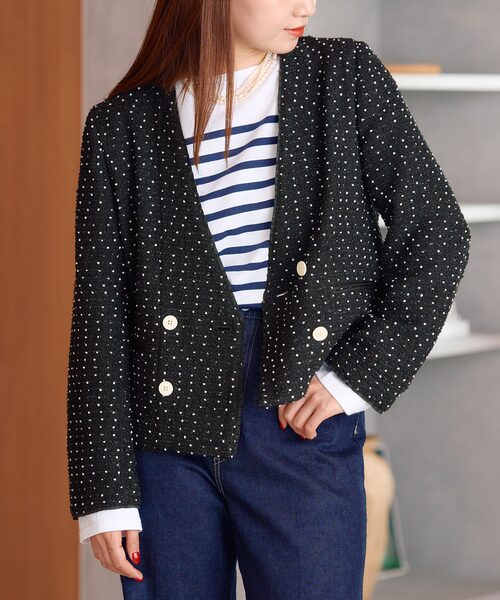 女性らしいシルエットにこだわったアイテムが多く、ブランドコンセプトの「女性の輝ける洋服」を細かいディテールにまで落とし込まれています。特にツイードの商品が素敵で、トップス、ボトム、バッグなど女性が欲しくなるような、ときめくデザインが揃っています。