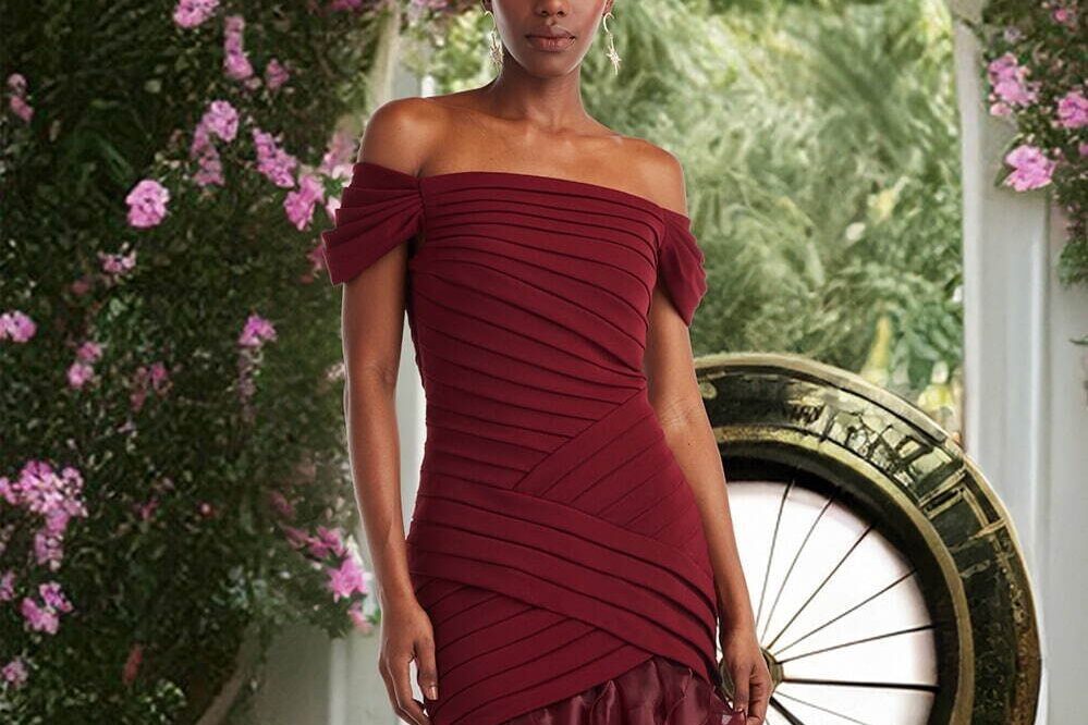 体にフィットするシルエットでありながら、窮屈さを感じさせない絶妙なバランス。ウエストラインの絞り、胸元のデザイン、裾の広がり——すべてが計算され、女性の体を最も美しく見せるように設計されています。