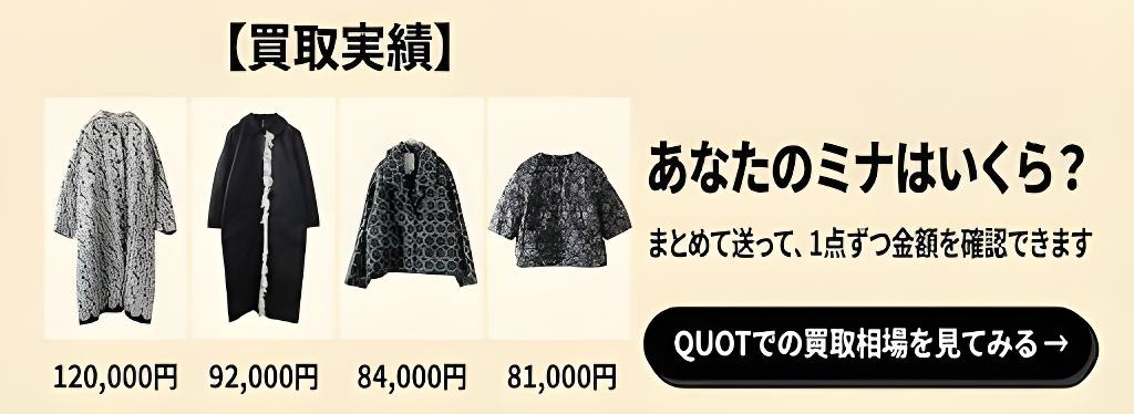 こんにちは、宅配買取QUOTの小松です!今回はミナペルホネンのタンバリン柄コートについてご紹介します。
