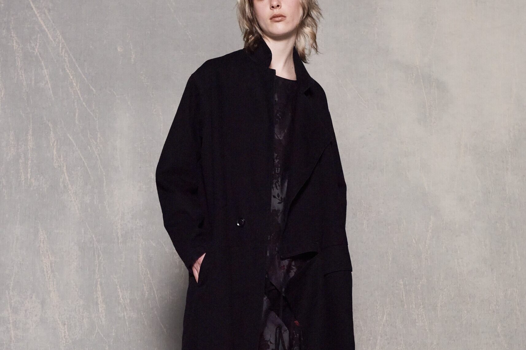 ヨウジヤマモト プールオム 2023-24年秋冬コレクションのランウェイの中で発表され、2023年秋冬シーズンより新メンズラインとして展開をスタート。機能的で品位ある日常着として普遍的な価値観を基盤に、カッティングとシルエットに拘った服づくりを行っています。